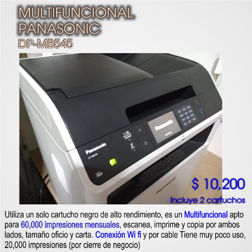 El multifuncional Panasonic es uno equipo seminuevo, tiene solamente 20 mil fotocopias.